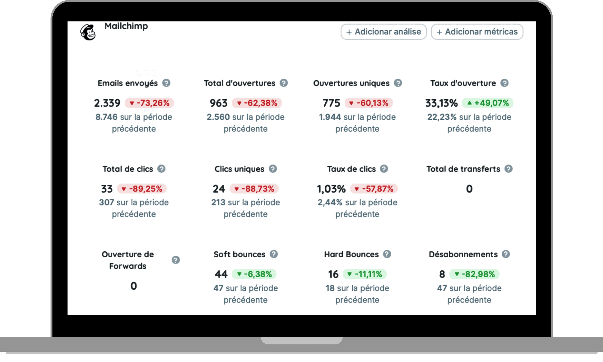 Les indicateurs que vous trouverez dans le rapport sur Mailchimp