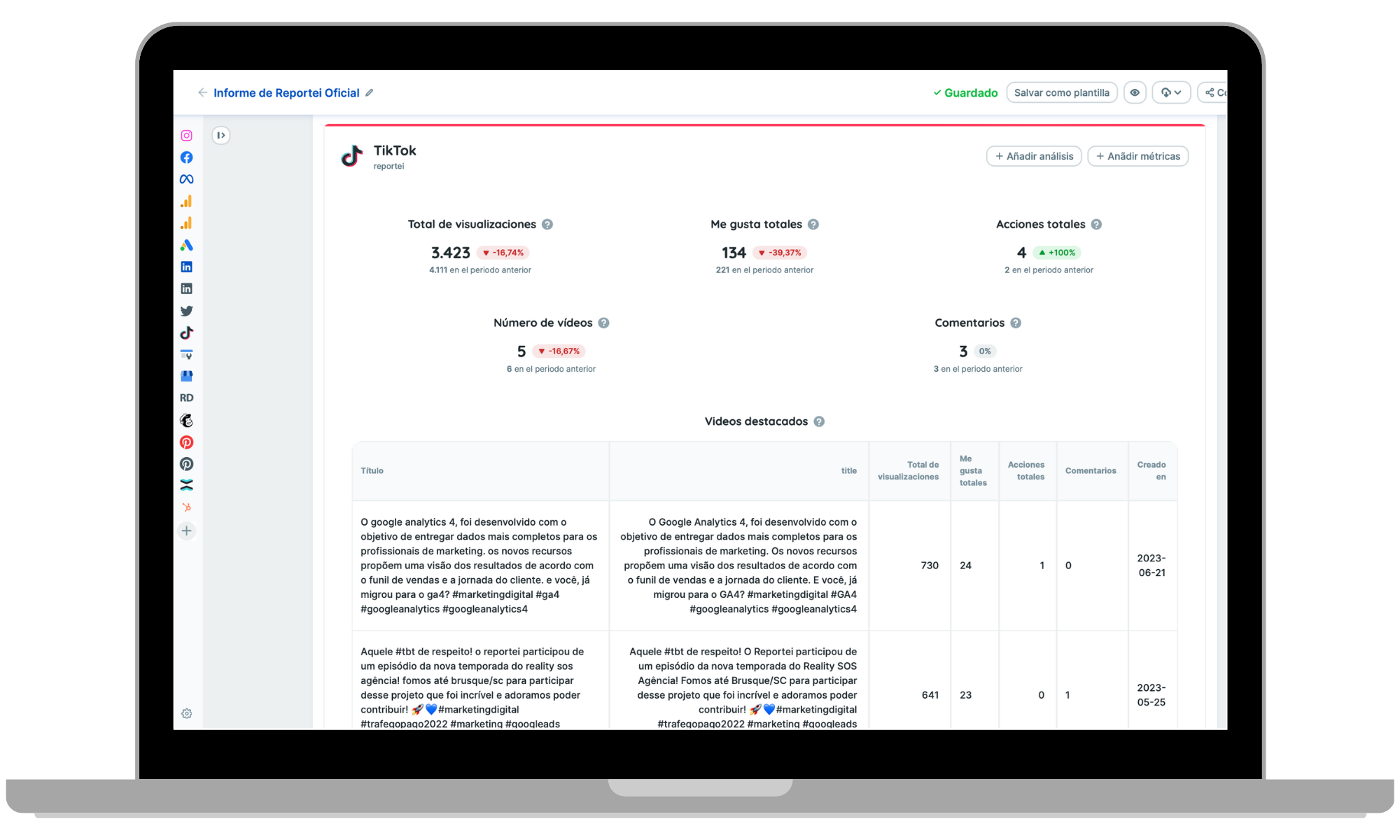 Informes y paneles de TikTok en 3 segundos con Reportei.