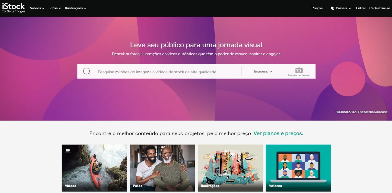 O iStock é um dos bancos de imagens mais conhecidos e utilizados no Brasil. A partir de uma assinatura, você tem acesso a fotos, vídeos, ilustrações e vetores exclusivos, com os mais diversos temas e sem preocupações com licença.