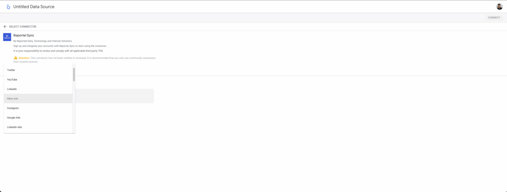 - Access the Looker Studio Data Source Gallery and search for Reportei Sync: https://lookerstudio.google.com/data