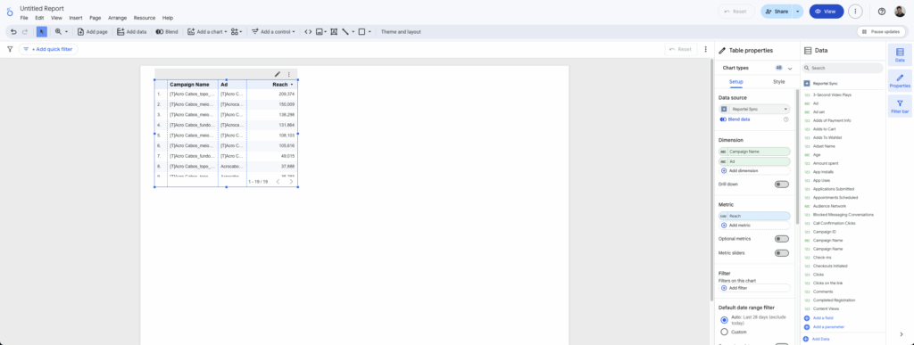 By integrating Looker Studio with Reportei Sync, you can automatically generate detailed reports, consolidating information from multiple channels into a single dashboard, without the need for programming.