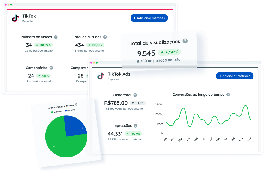 Analise agora mesmo seus dados de TikTok Ads e confira de perto todos os detalhes do Reportei!