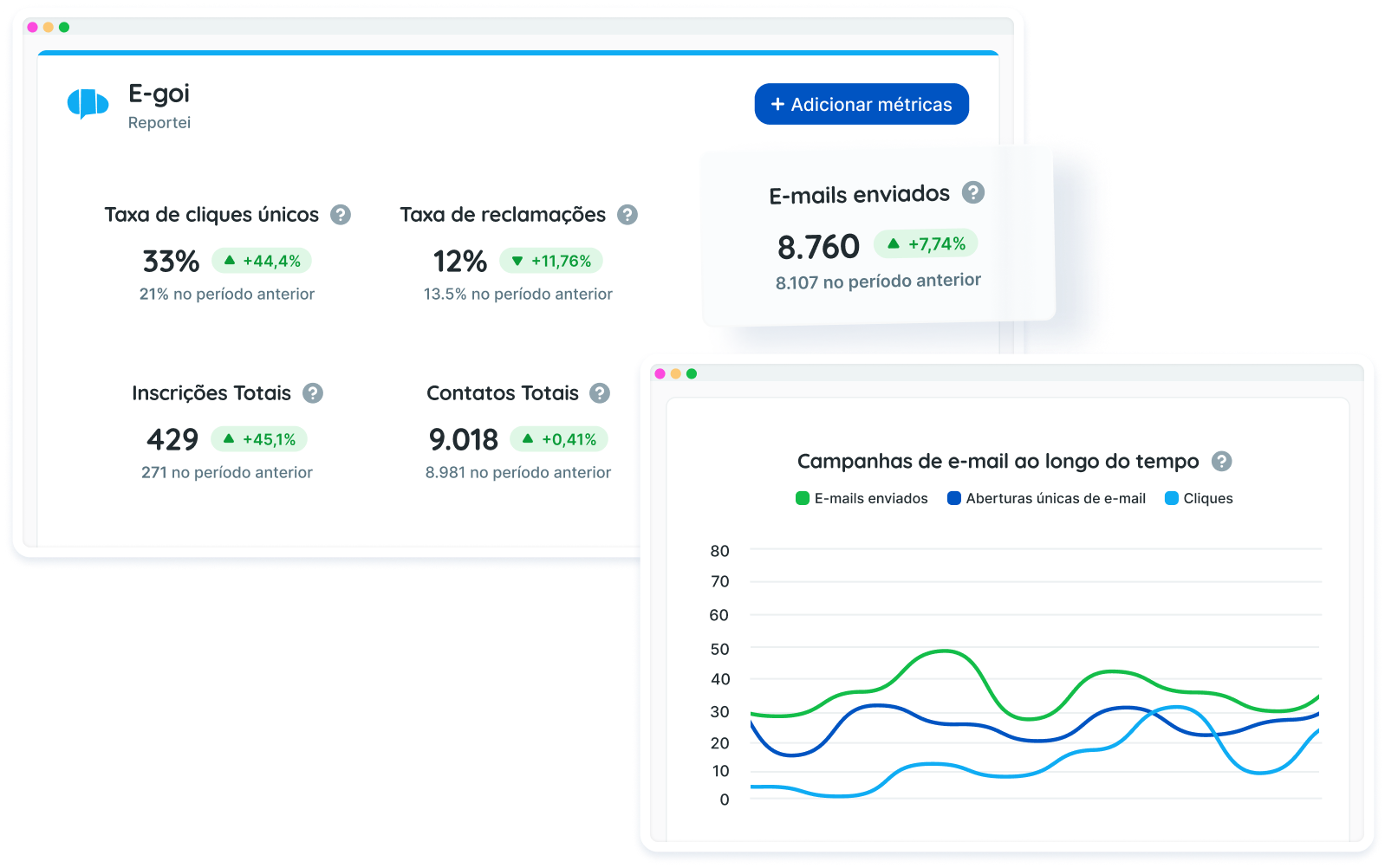 Quais métricas posso analisar no relatório e dashboard da E-goi?