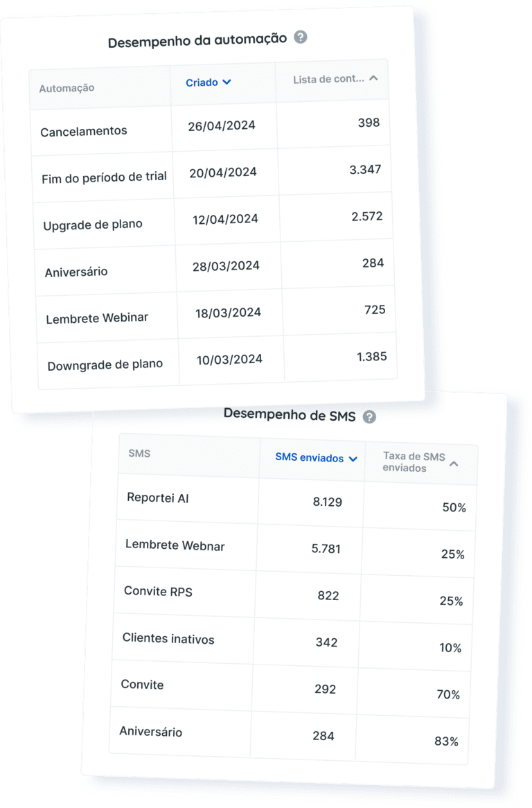 Você consegue analisar o desempenho desde as ações feitas por e-mail ou SMS!