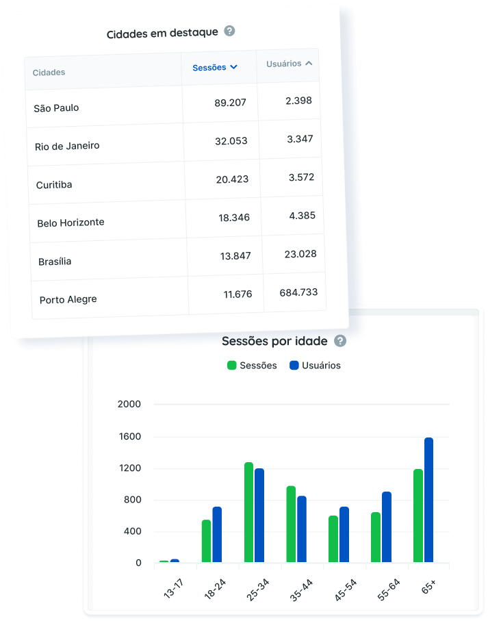 Veja as informações que você encontra em nosso relatório e dashboards de Analytics